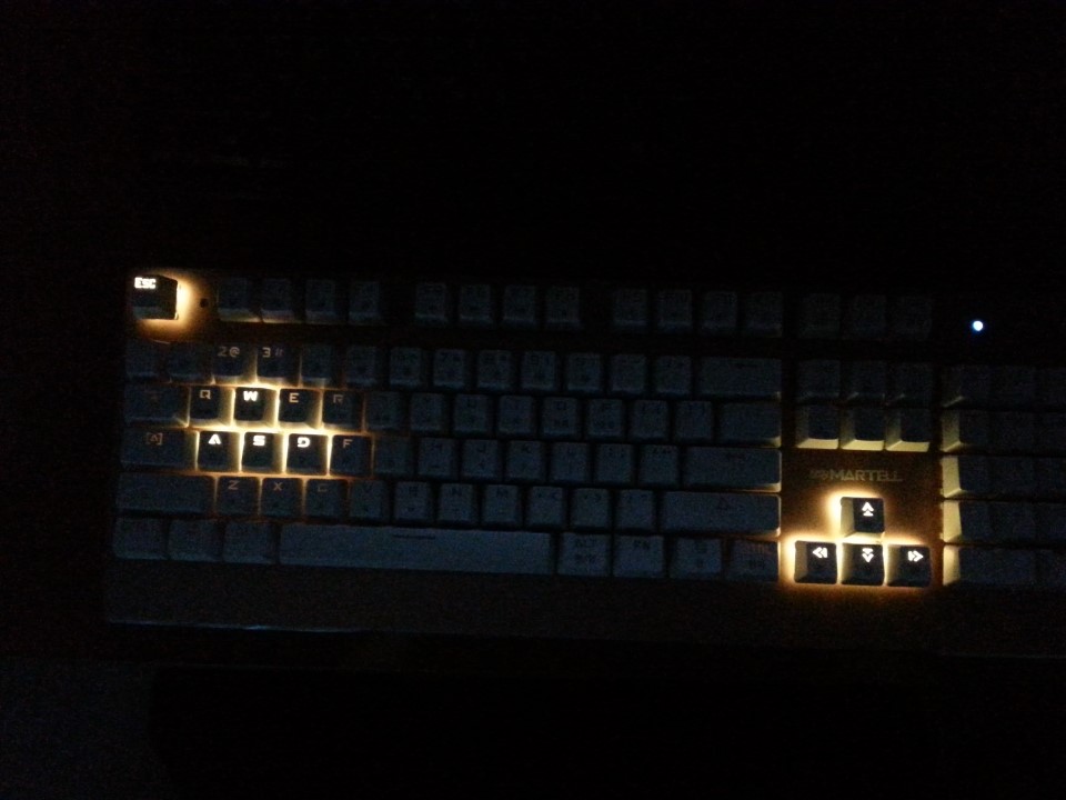 제공되어 있는 리무버를 이용해 확인한 스위치의 모습입니다. 오테뮤 스위치를 장착하여서 묵직하며 경쾌한 사운드를 만들어냅니다. 실제로 사용해보면 여타 다른 키보드보다 더욱 큰 사운드로 기계식 특유의 사운드를 좋아하는 분이라면 굉장히 환영할 만한 제품입니다. 또한 메탈슬러그와 같은 키보드를 몇번 해본 결과 사용해왔던 다른 기계식키보다는 살짝 묵직한 느낌이 있는 것 같았습니다. 불편할 정도는 아니지만 평소에 부드러운 것만 사용해보신 분이라면 저처럼 살짝 평소와는 다른 느낌을 받으실 것 같습니다. 키들은 이중사출로 지워지지 않으니 피시방같이 사람손이 많이 가는 곳이라면 각인을 영구적으로 쓸 수 있는 이 제품이 적격인것 같습니다.