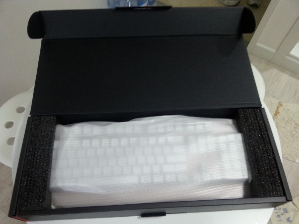 배송은 깔끔하고 튼튼하게 왔습니다. 양쪽의 스티로품이 정확히 고정시켜주어 파손없이 올 수 있게 해놨습니다. 비닐을 벗기면 키덮게가 나오는데 따로 추가 구성품을 구매하지 않는 점에서 좋았습니다.