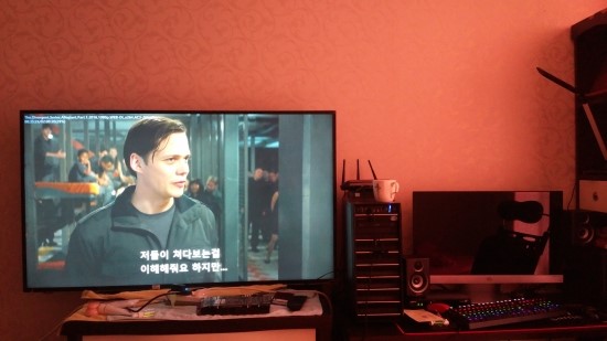 문제는...화질인데..하.........업스케일링이 잘 되고있는건지 ㅠㅠ 아님 케이블이 2.0이 아니라서 그런건지 화질이 좀 안좋음..뭉게진다고 할까? -_-+ 그리고 색감이다.. 색감이 좀 이상해 왜지???